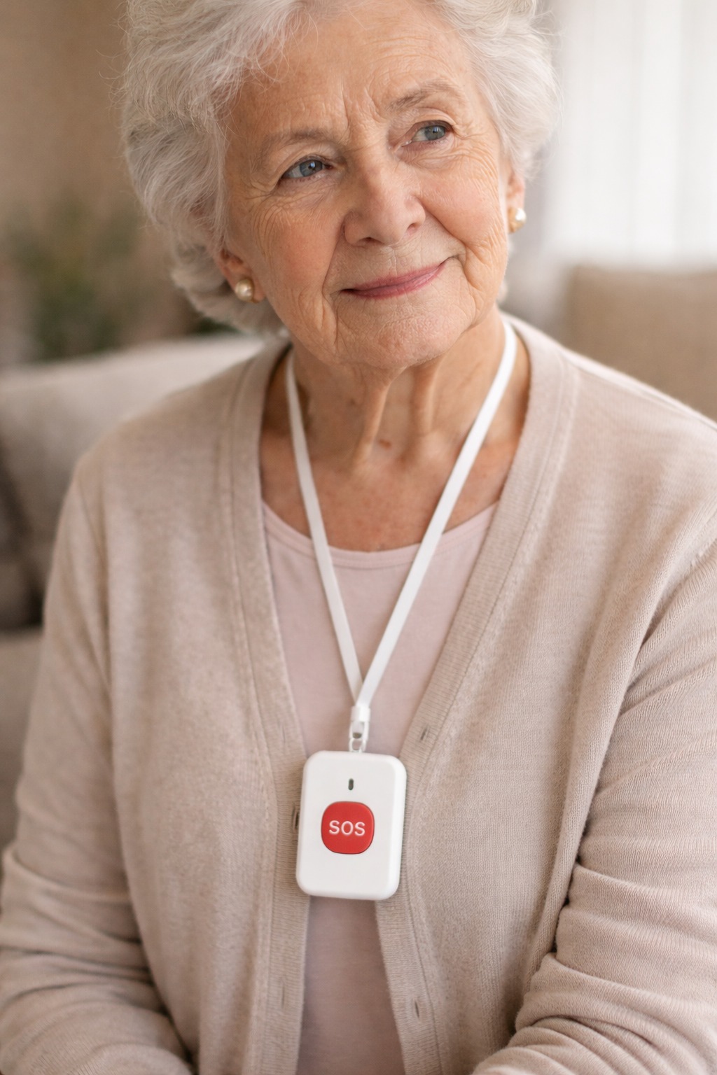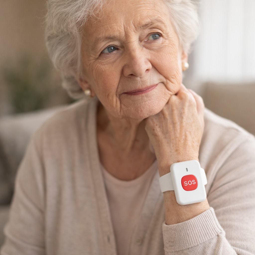 Optional Wristband SOS Button – Water-resistant panic button worn on the wrist.