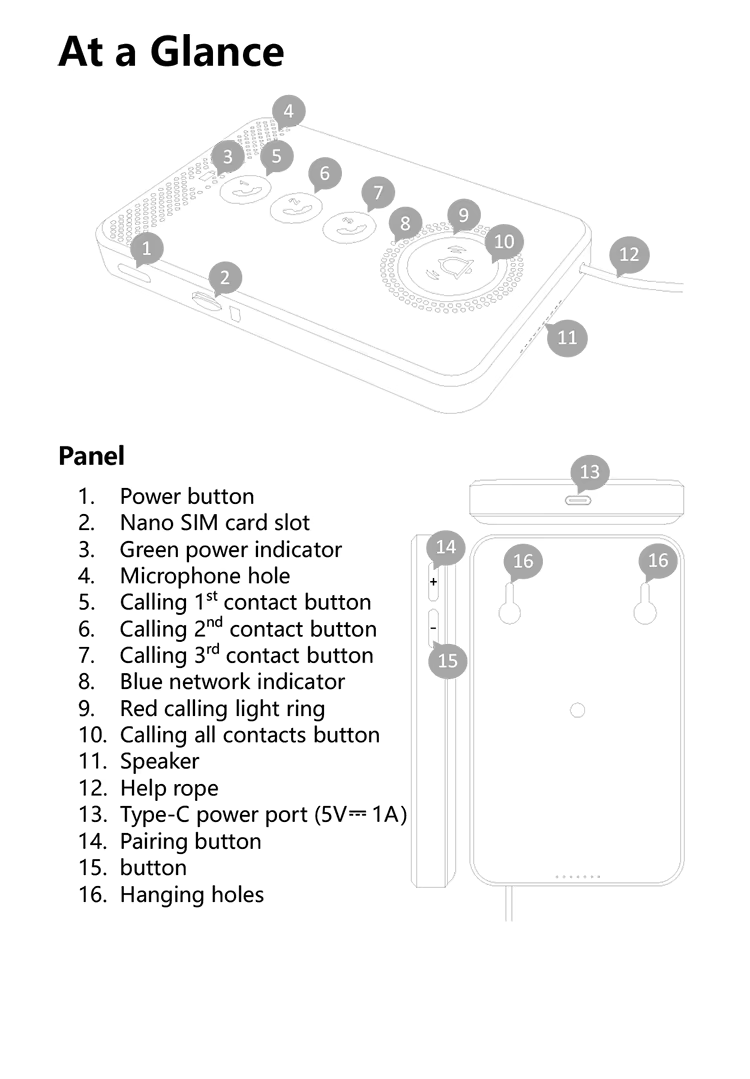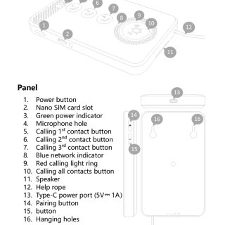 Preset 3 emergency phone numbers (family, neighbor, call center).